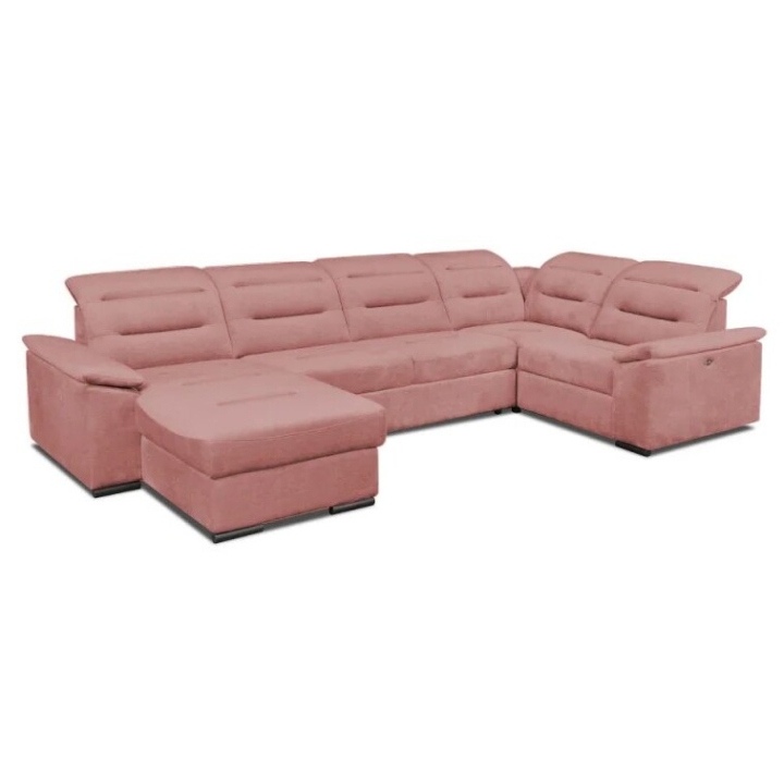 This model is equipped with a dolphin type sleeping function, as well as two bedding containers for easy storage. Adjustable headrests and wide armrests increase comfort when relaxing, while the high backrest improves back support. The corner sofa is available in left and right handed versions to suit the interior layout. It is upholstered on all sides , so it can be placed in the middle of the living room.