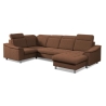 Upholstery is available in a wide range of fabrics, allowing you to match the corner sofa to your own design vision. The model is offered in a left- or right-sided version, which significantly facilitates its arrangement in various room layouts. Subtle quilting and chrome decorative details emphasise its refined form.