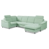 The Geneva 340x199cm corner sofa from MebloSoft is a proposal for those who appreciate spacious and multifunctional solutions for their lounge space. This model has been designed with comfort in mind both during the day and at night - it has a dolphin-type sleeping function , which allows it to be quickly transformed into a 126 × 266 cm bed, spring mattress. The built-in storage compartment in the ottoman and the armchair on the opposite side provides additional storage space, ideal for blankets or spare bedding.