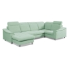 The Geneva 340x199cm corner sofa from MebloSoft is a proposal for those who appreciate spacious and multifunctional solutions for their lounge space. This model has been designed with comfort in mind both during the day and at night - it has a dolphin-type sleeping function , which allows it to be quickly transformed into a 126 × 266 cm bed, spring mattress. The built-in storage compartment in the ottoman and the armchair on the opposite side provides additional storage space, ideal for blankets or spare bedding.