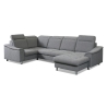 The Geneva 340x199cm corner sofa from MebloSoft is a proposal for those who appreciate spacious and multifunctional solutions for their lounge space. This model has been designed with comfort in mind both during the day and at night - it has a dolphin-type sleeping function , which allows it to be quickly transformed into a 126 × 266 cm bed, spring mattress. The built-in storage compartment in the ottoman and the armchair on the opposite side provides additional storage space, ideal for blankets or spare bedding.