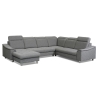 The width of the corner sofa is 340 cm, while the depth of the shorter side is 178 cm and the depth of the longer side is 269 cm. The height of the furniture is 93 cm, and with the headrests raised it reaches 103 cm. The furniture is fitted with a dolphin-type mechanism, which allows the furniture to be quickly and conveniently unfolded into the sleeping position. The sleeping surface is 126 × 266 cm, allowing it to be used as a bed for guests or as an additional sleeping place. Another advantage are the two bedding containers , cleverly concealed in the body of the corner sofa.