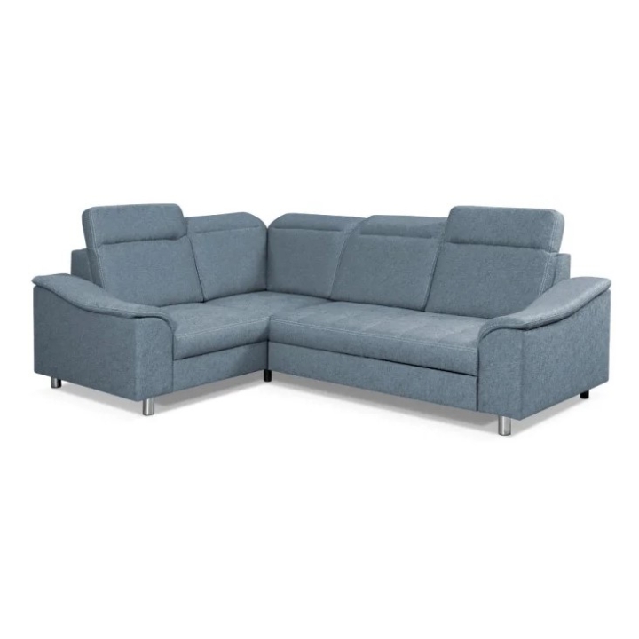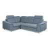 The corner sofa is equipped with a "dolphin" type unfolding mechanism, which allows the furniture to be easily transformed into a sleeping surface measuring 126 × 190 cm. The integrated bedding container allows for convenient storage of additional textiles. An additional advantage are the adjustable headrests, which can be adjusted to suit individual needs.