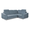 The corner sofa is equipped with a "dolphin" type unfolding mechanism, which allows the furniture to be easily transformed into a sleeping surface measuring 126 × 190 cm. The integrated bedding container allows for convenient storage of additional textiles. An additional advantage are the adjustable headrests, which can be adjusted to suit individual needs.