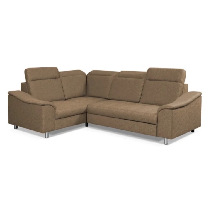 The corner sofa is equipped with a "dolphin" type unfolding mechanism, which allows the furniture to be easily transformed into a sleeping surface measuring 126 × 190 cm. The integrated bedding container allows for convenient storage of additional textiles. An additional advantage are the adjustable headrests, which can be adjusted to suit individual needs.