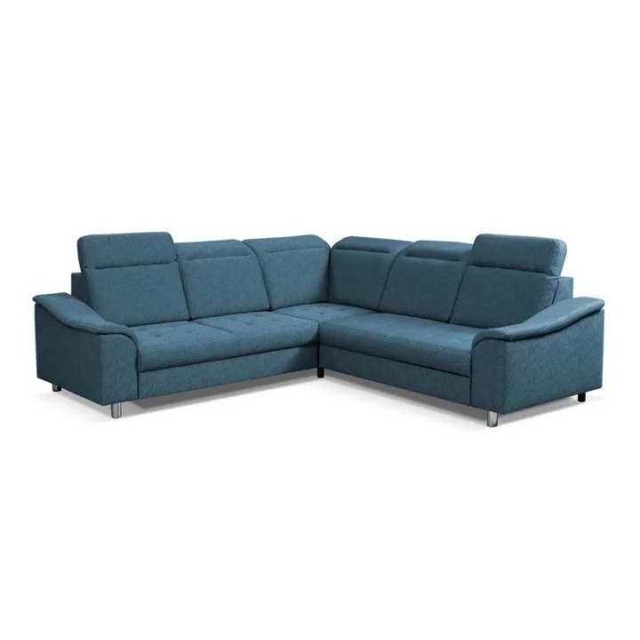 The whole is set on metal legs with a chrome finish, which give the piece a modern expression. The upholstery is available in an extensive palette of fabrics, making it possible to personalise the corner sofa according to individual colour preferences. The carefully crafted quilting introduces a subtle decorative detail, emphasising the carefulness of the finish.