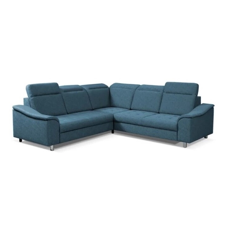The whole is set on metal legs with a chrome finish, which give the piece a modern expression. The upholstery is available in an extensive palette of fabrics, making it possible to personalise the corner sofa according to individual colour preferences. The carefully crafted quilting introduces a subtle decorative detail, emphasising the carefulness of the finish.