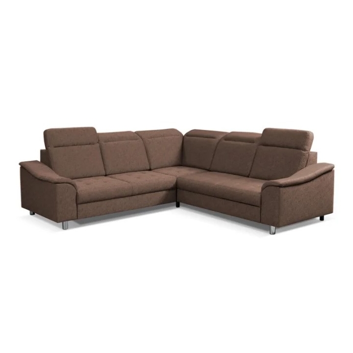 The whole is set on metal legs with a chrome finish, which give the piece a modern expression. The upholstery is available in an extensive palette of fabrics, making it possible to personalise the corner sofa according to individual colour preferences. The carefully crafted quilting introduces a subtle decorative detail, emphasising the carefulness of the finish.