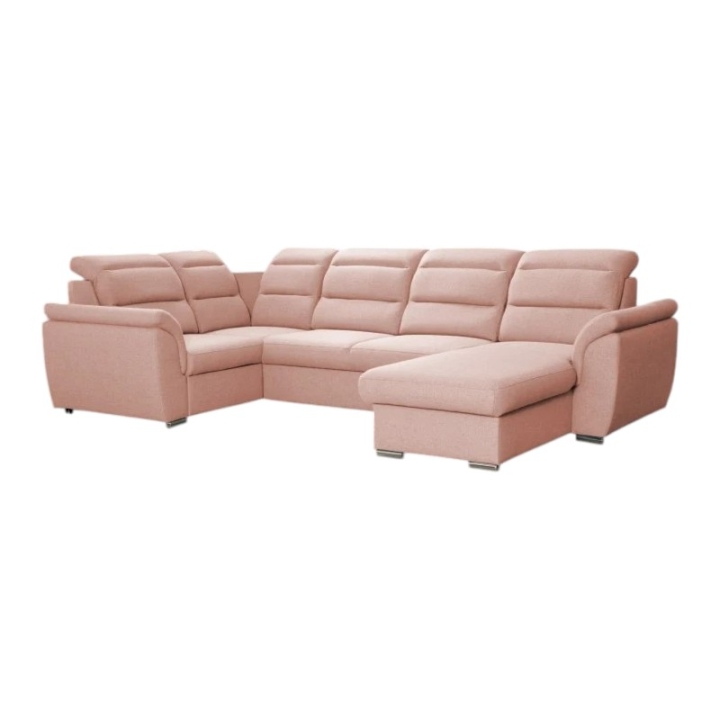 Milancorner sofa with a sleeping function and a bedding container is available in a wide range of fabrics and right- or left-sided configurations. Thanks to its modern design, it will prove useful in any living room as the main element of the lounge area. It is an option for those looking for a large corner sofa with space for sleeping and storage.