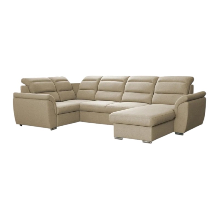 The furniture is equipped with a dolphin-type sleeping function, which allows you to easily obtain a sleeping surface of 248x118 cm. Chrome-plated metal legs add a modern touch, while the high backrest and wide armrests further enhance the comfort of use.