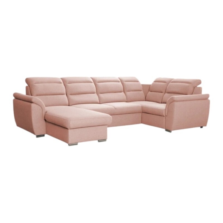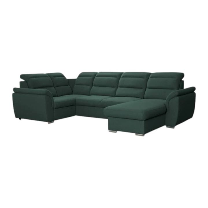 Milancorner sofa with a sleeping function and a bedding container is available in a wide range of fabrics and right- or left-sided configurations. Thanks to its modern design, it will prove useful in any living room as the main element of the lounge area. It is an option for those looking for a large corner sofa with space for sleeping and storage.