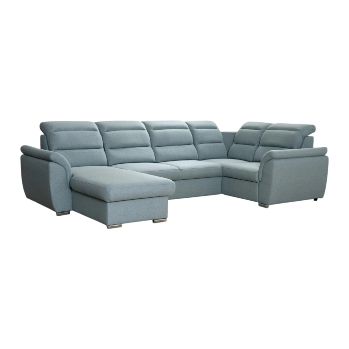 The 318x185 cm Mediolan corner sofa by Meblosoft is a modern lounge furniture that provides a comfortable place for daily relaxation. Thanks to the use of HR high elastic foam and corrugated springs, the corner sofa adapts to the figure and offers soft yet stable support. The adjustable headrests allow you to individually adjust the height and angle of the backrest, which contributes to your comfort while resting.
