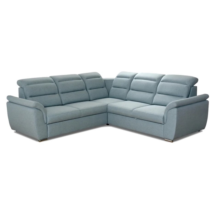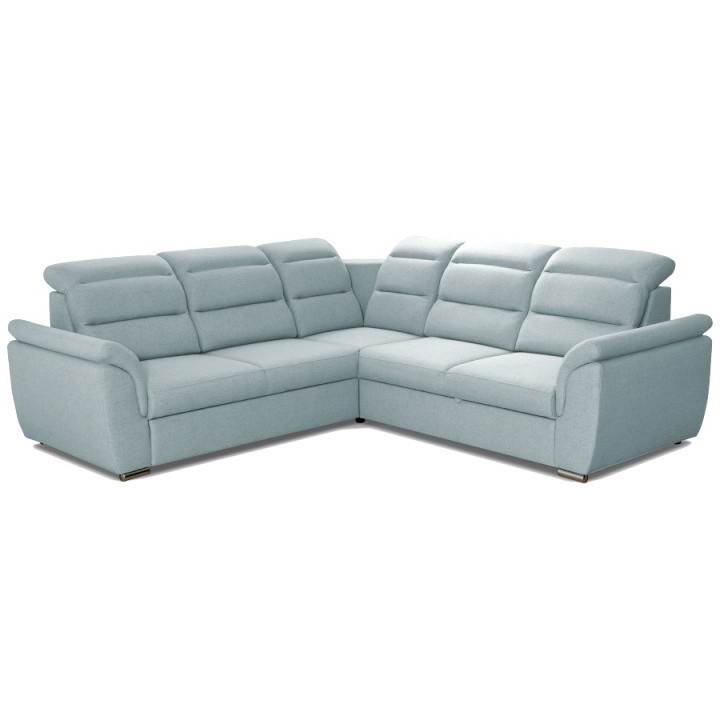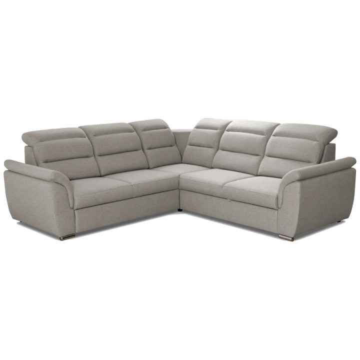 This model offers adjustable headrests that allow you to adjust the height and angle to suit your needs. The whole is supported by chrome legs, which add a modern touch to the piece and ensure stability. The corner sofa is available in right- and left-hand versions, and a wide range of upholstery fabrics makes it possible to perfectly match the interior design.