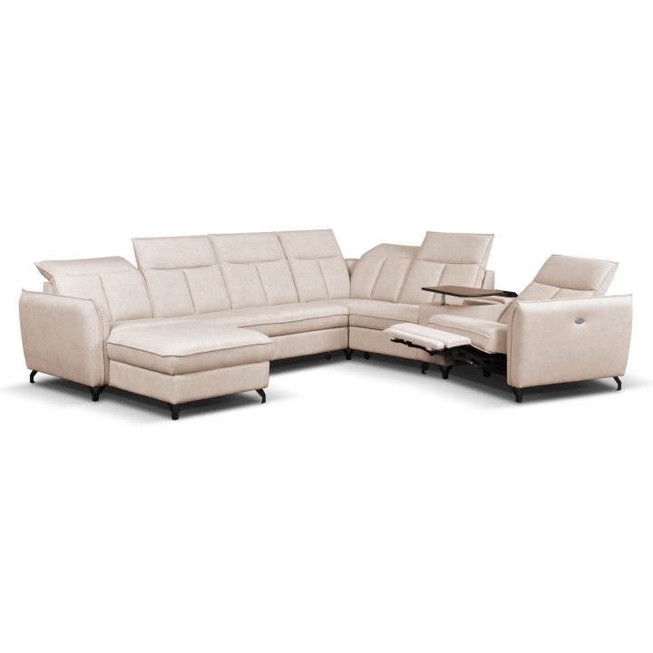 The model is available as a right- or left-sided version and in a wide range of upholstery fabrics. The whole is based on metal legs with the addition of a built-in bar, which emphasises the modern character of the furniture. Romantica is an excellent choice for those looking for a comfortable corner sofa with additional functions for a large living room.