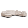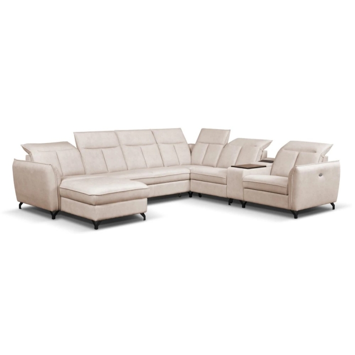The model has adjustable headrests, high backrest and wide armrests. The sofa is available in a right- and a left-hand version. For an extra charge, it is possible to order a module with a container equipped with 230V sockets and USB ports. The entire set is set on metal legs. The customer has the option of personalisation - a choice of upholstery fabric and corner sofa side configuration.