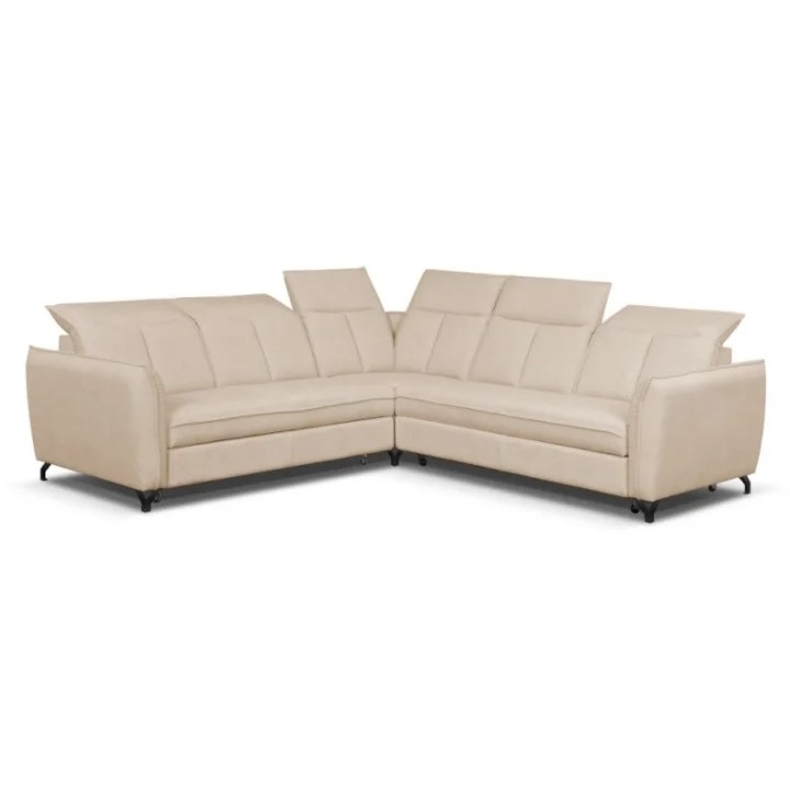 A corner sofa with a sleeping function and a container for bedding from the Romantica collection is a piece of furniture designed with comfort and everyday use in mind. The metal black legs and modern form make it fit well in modern or classic style arrangements.