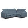 The corner sofa is 267 cm wide, 197 cm deep and 85-100 cm high with the headrest unfolded. An additional advantage of the furniture is the possibility of equipping it with a module with a container with 230V socket and USB ports, as well as an optional electric relaxation function, thanks to which the user can unfold the seat and backrest to a semi-reclining position. Metal legs stably support the structure and emphasise the modern character of the unit.
