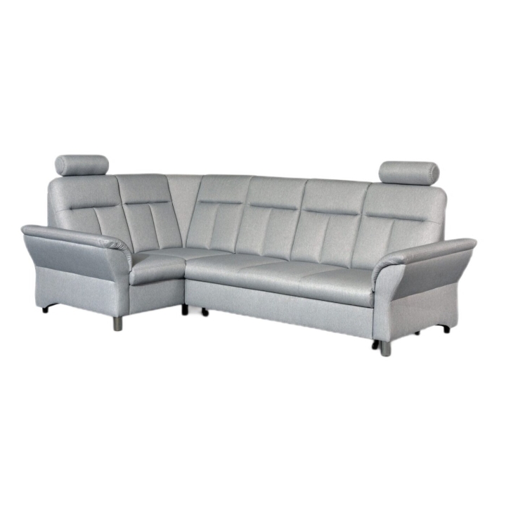 The equipment of the Toronto corner sofa also includes a bedding container, where you can easily fit blankets, pillows or bedding. This model is available in right- and left-sided versions to suit your interior layout. The backrests with headrests and the wide armrests are conducive to relaxing in a sitting and semi-reclining position.