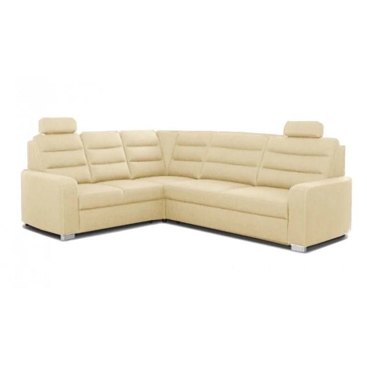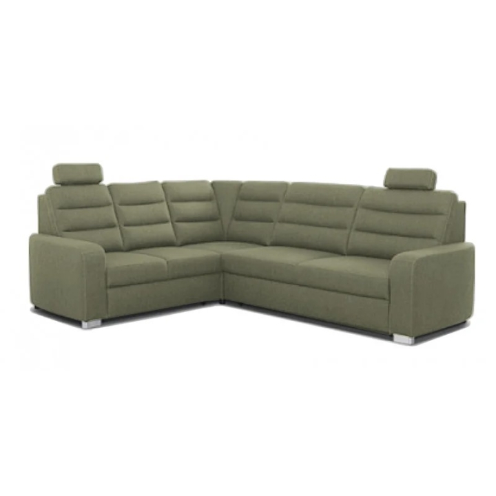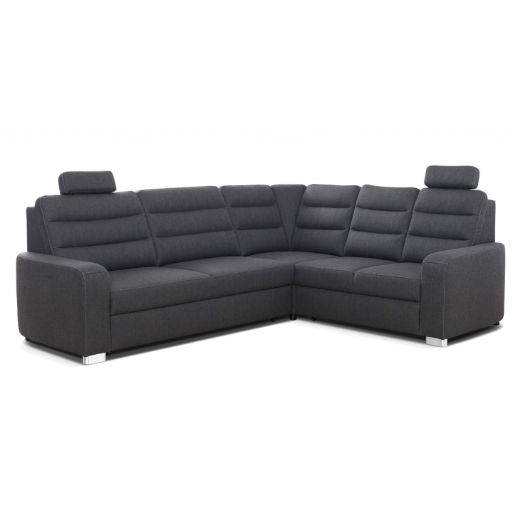 The sleeping surface, measuring 204x120 cm, is unfolded using a dolphin-type mechanism. Simply slide the lower part out from under the seat and lift the hidden mattress to seat level, creating a flat sleeping area. This solution, complemented by a spring mattress, provides even support during a restful night's sleep. The furniture is also equipped with a bedding container, which makes it easier to organise the space and store additional textiles. Thanks to this, the corner sofa also fulfils the role of a temporary sleeping place without the need to sacrifice the qualities of daytime rest.