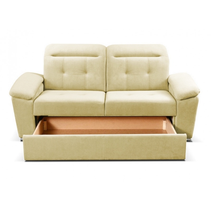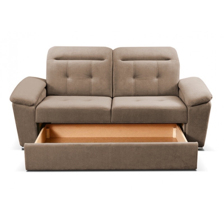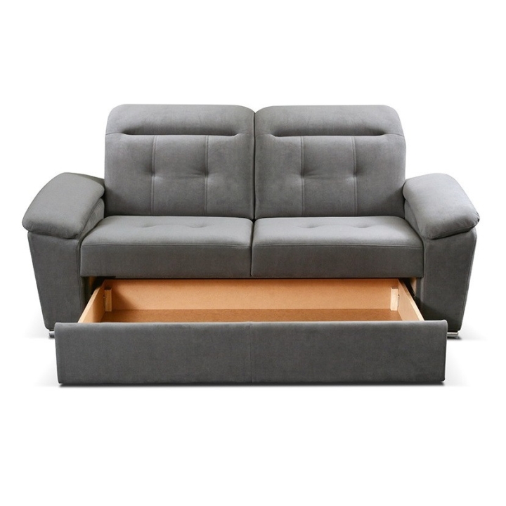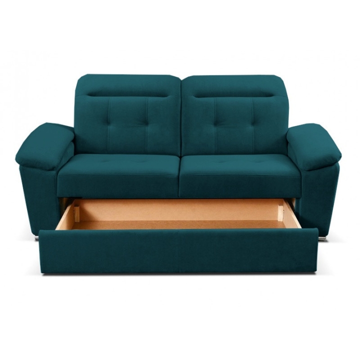 The model is set on metal legs, which emphasises the modern look. The quilted backrest gives the sofa a unique character, and the bedding container allows you to store additional textiles. The availability of different upholstery colours allows you to match the furniture to any interior design.