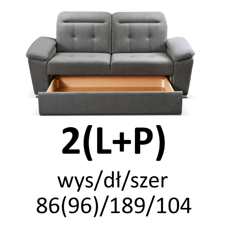 The Comforto sofa by Meblosoft is a two-seater sofa with a storage box, ideal for a living room or guest room. With a width of 189cm, a depth of 104cm and a height of 86cm and with raised headrests of 96cm, the sofa provides a comfortable place for everyday relaxation. Adjustable headrests, wide armrests and a soft seat add to the comfort, while corrugated springs and high-flexible foam ensure adequate support.