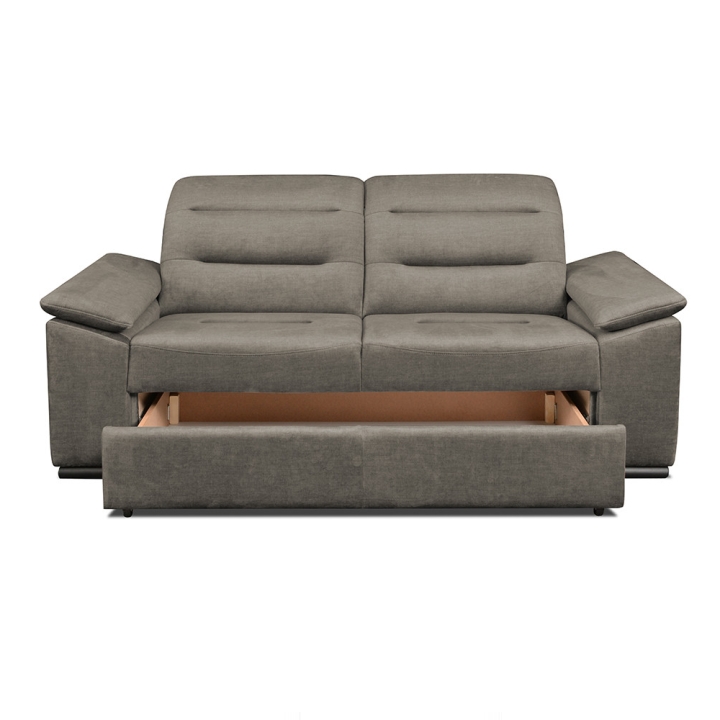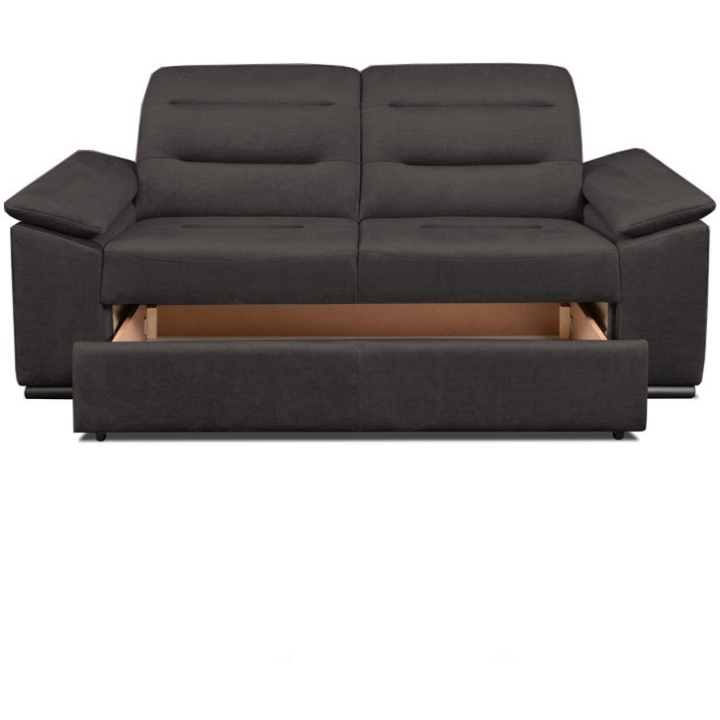The sofa with a bedding container is a good choice for smaller spaces where extra storage space is important. The furniture features decorative black elements that give it a modern look. The model can be combined with other pieces of furniture from the Exclusive collection to create a coherent living room or lounge arrangement.