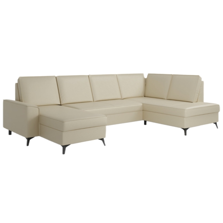 The external form of the corner sofa is emphasised by the black legs, which add a modern touch and correspond perfectly with the simple shape of the piece of furniture. Another advantage is the option of equipping the corner sofa with a headrest, which can be selected at will, increasing the comfort of rest. This makes it possible to individually adjust the details according to your preferences.