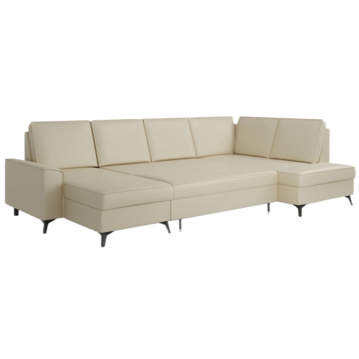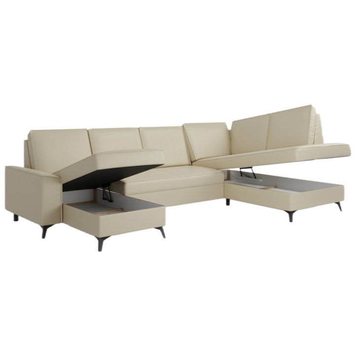 The corner sofa features as many as two bedding containers, located on both sides of the structure. This design allows storage not only of duvets and pillows, but also of additional textiles. Sliding seats and a light folding mechanism make this model versatile in everyday use.