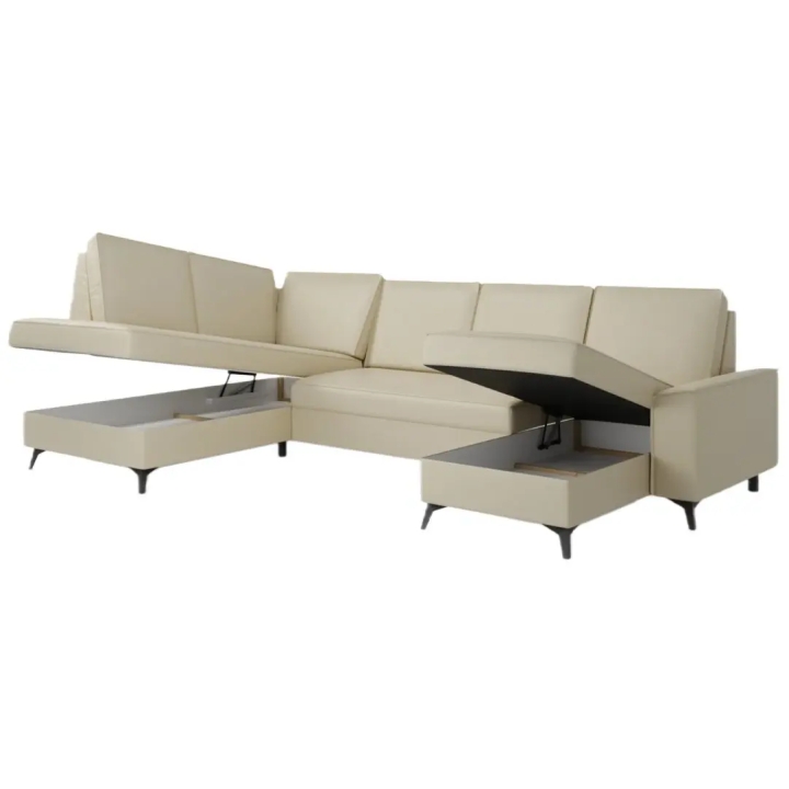 The corner sofa features as many as two bedding containers, located on both sides of the structure. This design allows storage not only of duvets and pillows, but also of additional textiles. Sliding seats and a light folding mechanism make this model versatile in everyday use.