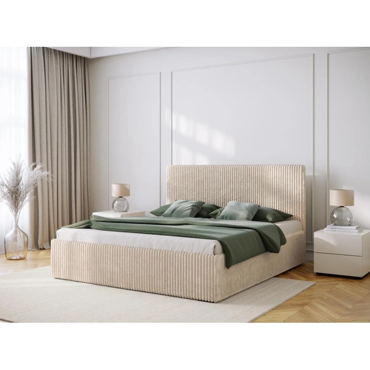 The furniture is available in a wide range of colours and fabrics - the colour and type of upholstery can be selected in the configurator, adjusting the bed to the bedroom décor. The photo shows the bed in fabric from the Ambience collection (corduroy) - the choice of a different fabric may affect the final appearance of the furniture.