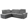 The 126x195 cm spring-loaded sleeping function provides additional sleeping space for guests. The bedding container allows you to store textiles to keep the room tidy. The model is set on chrome legs, which emphasise the modern style of the corner sofa.