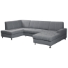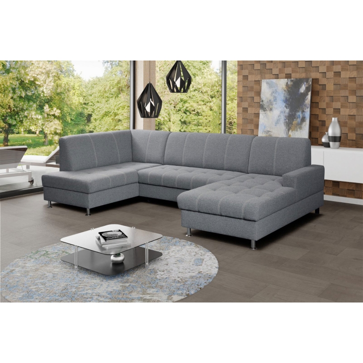 The modern look of the corner sofa is emphasised by tasteful quilting, decorative stitching on the backrest and chrome legs. The upholstery is made of fabric available in many colour options. The corner sofa is available as a right- and left-sided sofa, making it adaptable to any interior.
