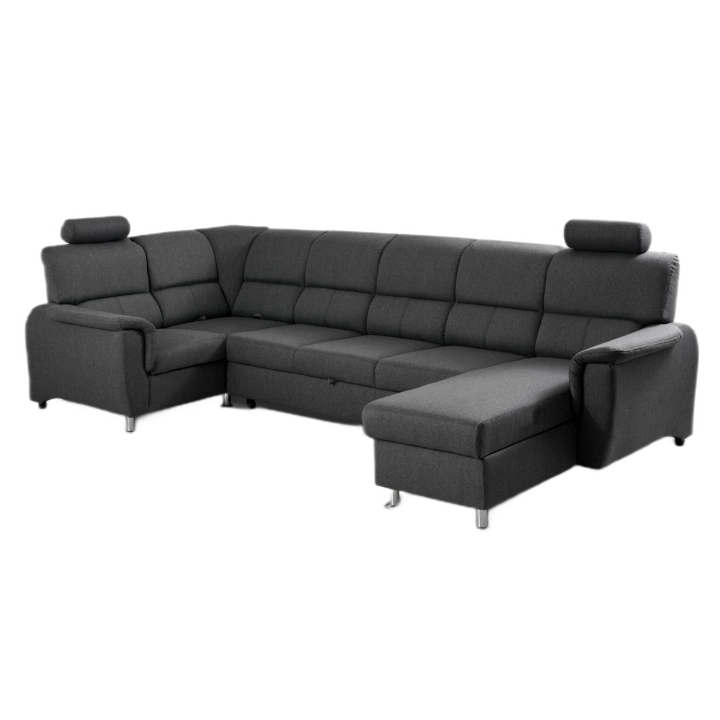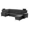 Inside the structure, a corrugated spring and high-flexible foam with upholstery strips in the backrest are used, which translates into greater comfort both when sitting and relaxing in the reclining position. The sleeping surface is 260x118 cm, which allows the corner sofa to be freely used as an occasional bed. In addition, the furniture offers a bedding container discreetly hidden in the body for easy storage.