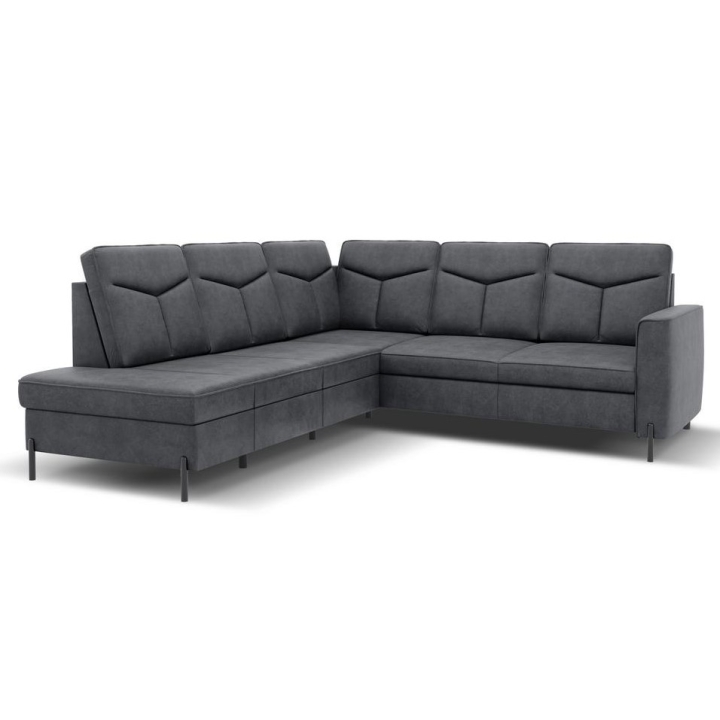 The 197x135 cm sleeping surface unfolds thanks to a puma-type system that works efficiently and intuitively - simply lift the seat and slide it forward to extend the other part of the bed. This solution allows you to quickly transform the corner sofa into a full-size sleeping area.
