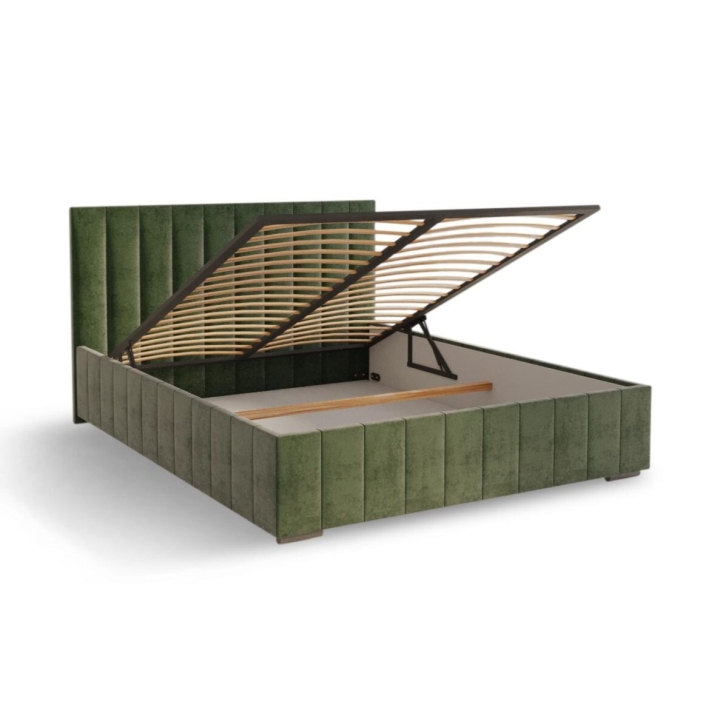 The Kris upholstered bed by Meblosoft is a suggestion for people who are looking for a distinct form and comfort in their everyday interior. This model is available in several size variants, which allows it to fit into a variety of bedroom arrangements. It comes with a frame with a gas lift, which makes access to the bedding container hidden under the frame simple and effortless.