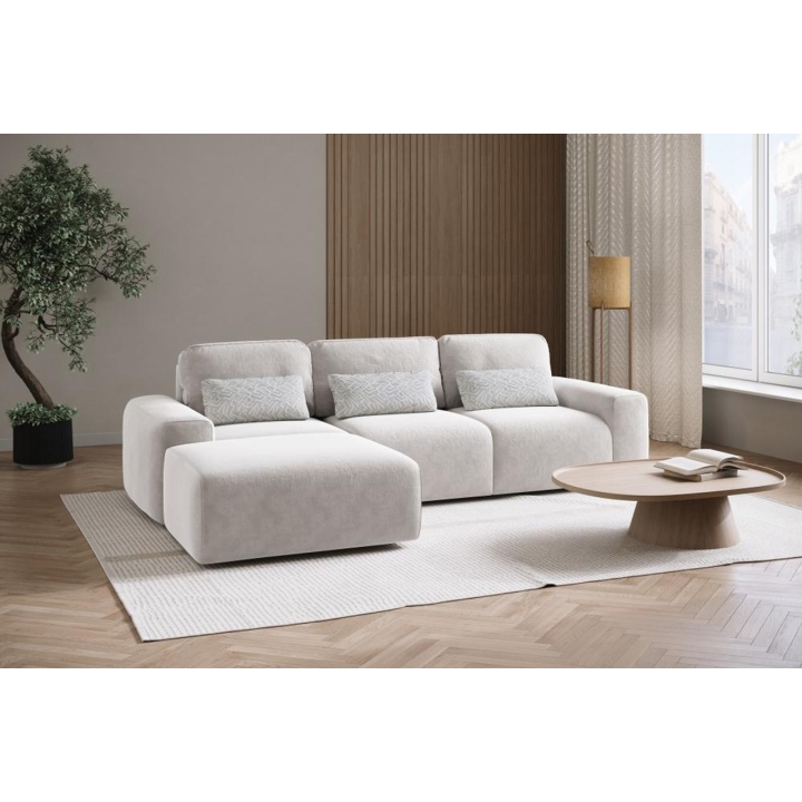 The Linea corner sofa by Meblosoft is an expansive upholstered piece of furniture that will prove to be a comfortable place for everyday lounging and occasional sleeping. It comes with additional decorative cushions, which increase the comfort of the seat and give the whole a coherent look. The model is equipped with the Puma Pro sleeping function, which allows the corner sofa to be unfolded quickly and effortlessly - in just one movement, without having to remove the back cushions. There is also a bedding container in the seat, so additional items of equipment are always at hand.