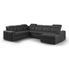 The height of the corner sofa ranges from 88 to 98 cm, depending on the position of the adjustable headrests, and the width is 341 cm. The depth of the shorter side is 176 cm and the longer side is 270 cm. The whole set rests on low metal legs in black, and you can choose the side of the corner unit - left or right. It is possible to enrich the set with a module with built-in 230V sockets and a USB port, as well as with an electric or manual relaxation function, allowing the armchair to be folded into a semi-reclining position.