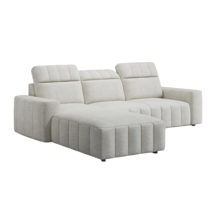 The model is equipped with movable headrests, which can be adjusted to suit your needs by increasing the height of the backrest from 88 cm to 104 cm. An additional advantage is the Puma ++ sleeping function, which works on the principle of the classic Puma mechanism, but with extended seat extension. It unfolds in one smooth movement - simply lift the seat up and slide it forward and the sleeping surface unfolds automatically, without having to remove the back cushions. The spring-assisted system ensures intuitive and light operation, without the use of force. The 210x150 cm sleeping surface will prove useful for occasional overnight stays.