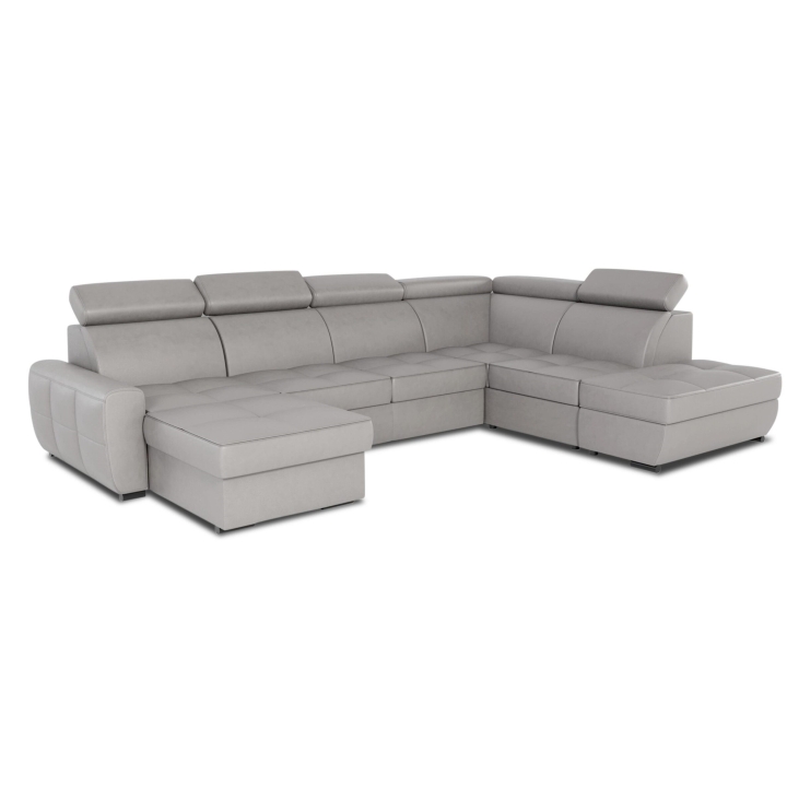 The generous 322 cm wide seat is based on a corrugated spring and high-flexible foam to provide stability and adequate support. The backrest is also made of the same type of foam, guaranteeing a comfortable back position. The height of the corner sofa is 81 cm, and it reaches 99 cm when the headrests are unfolded, making it possible to adjust its profile to individual expectations.