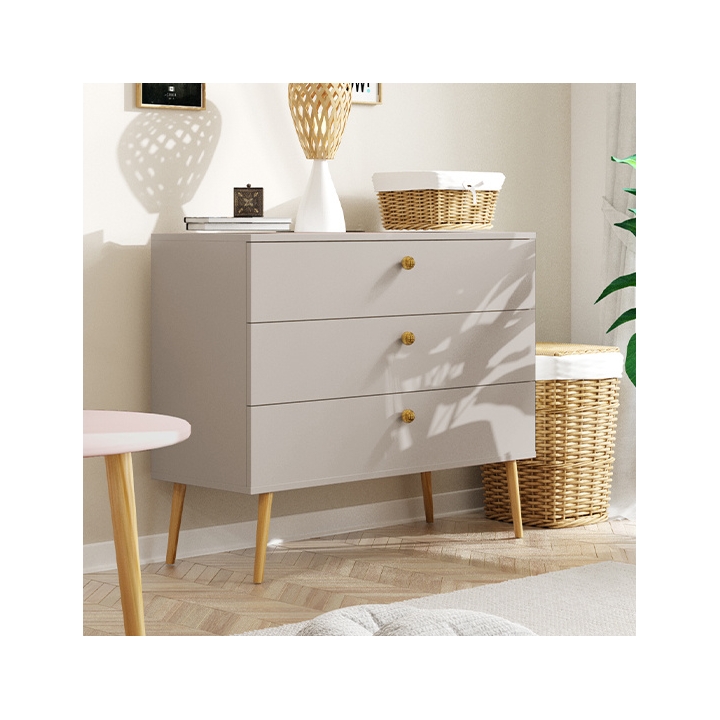 The chest of drawers is equipped with three wide drawers, which can easily accommodate clothes, documents, textiles or other small items. Ball bearing slides of the renowned Sevroll company with a silent closing system ensure smooth opening and closing and full extension, so you can easily reach all the contents. This is a solution that works well both in the bedroom and in the living room or hallway.