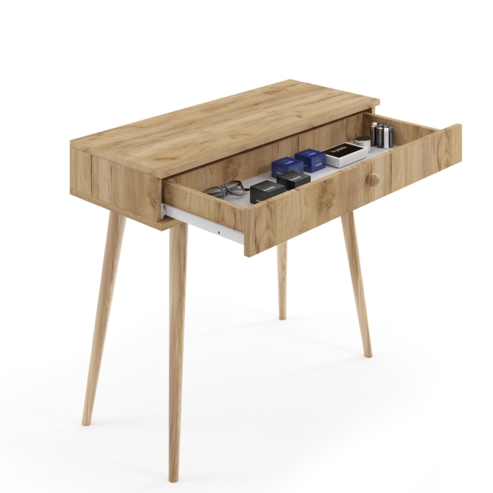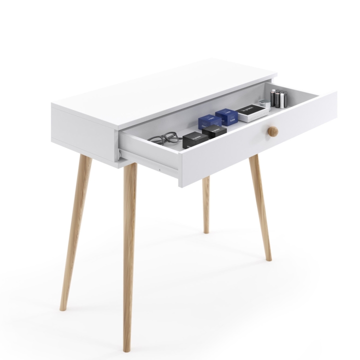 Thanks to the depth of 39 cm, the console can serve various functions - it will prove useful as a small desk for work at home, and in the bedroom it can become a dressing table. High legs allow you to conveniently slide under the seat top, which saves space and increases the comfort of use.