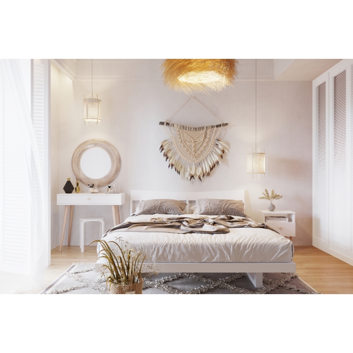 Boho console on high legs is a piece of furniture that fits perfectly in many interiors - from the hallway to the bedroom. Its slender form and natural details make it a subtle decoration of the house, while providing space for storing trinkets. Hidden under the wide top is a capacious drawer, which will accommodate keys, cosmetics or other accessories that are always worth having at hand. The string handle emphasizes the boho character and adds a unique charm to the furniture.
