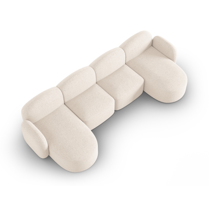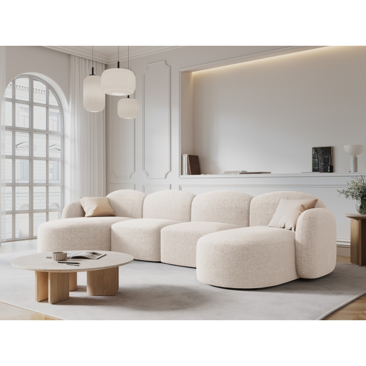 Blair is distinguished by its rounded lines, soft edges and soft armrests, 22 cm wide and 61 cm high, which give the furniture a cosy and modern feel. The sofa has been designed with maximum comfort in mind - the seat filling is thick polyurethane foam, which provides resilience and durability. The charming rounded backrest with a height of 34 cm fits perfectly into the trend of modern arrangements, and the wide chaise longue with a usable depth of 128 cm makes the sofa perfect for both relaxing and socialising.