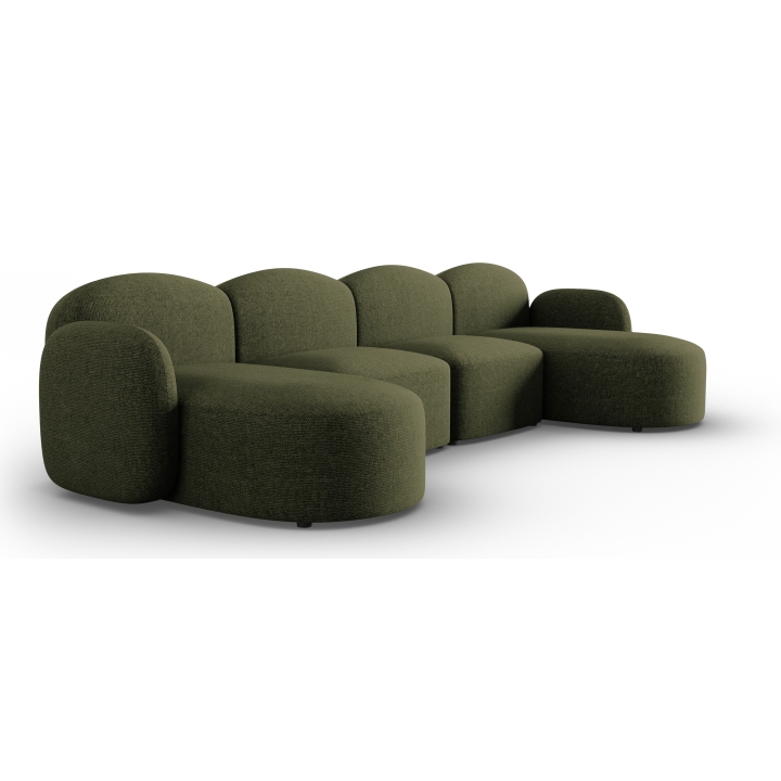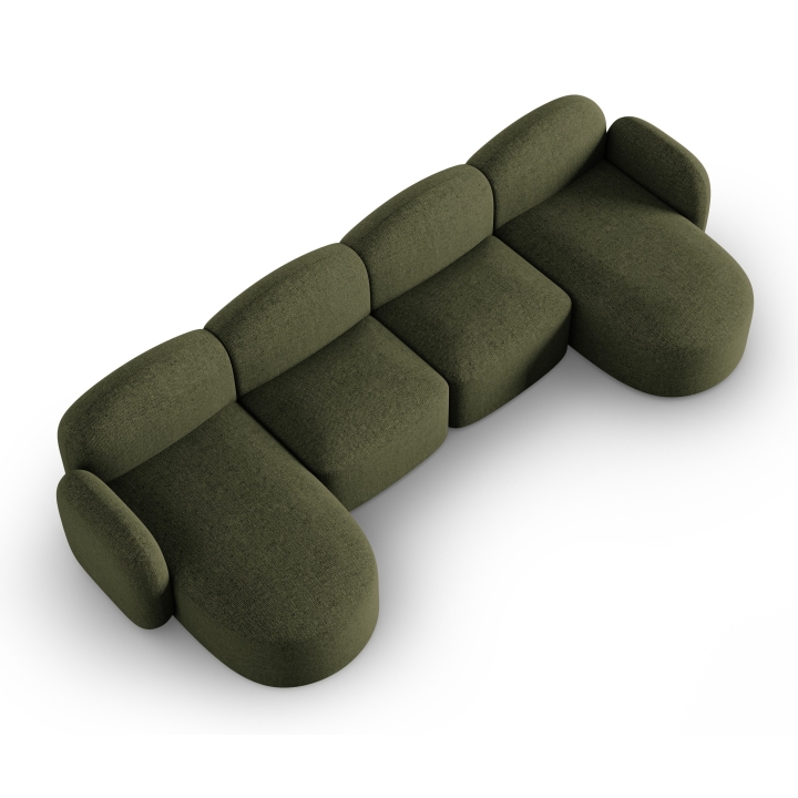 Blair is distinguished by its rounded lines, soft edges and soft armrests, 22 cm wide and 61 cm high, which give the furniture a cosy and modern feel. The sofa has been designed with maximum comfort in mind - the seat filling is thick polyurethane foam, which provides resilience and durability. The charming rounded backrest with a height of 34 cm fits perfectly into the trend of modern arrangements, and the wide chaise longue with a usable depth of 128 cm makes the sofa perfect for both relaxing and socialising.