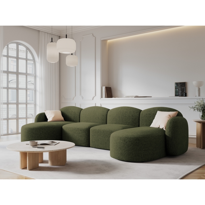 The Blair chenille 6-seater panoramic corner sofa by Micadoni is the ideal solution for lovers of minimalist design combined with a rounded form. Its spacious design measuring 354cm long, 167cm wide on both sides and 76cm high is perfect for spacious living rooms. The deep 65cm seat with a height of 42cm and a width of 150cm ensures comfort during everyday use. The chaise longue, 75cm wide and 167cm long, will allow you to watch TV comfortably even when lying down. The corner sofa is upholstered in high quality Legacy chenille fabric with a distinct weave structure, which is characterised by a silky texture, slightly iridescent surface and durability of 50,000 Martindale cycles.