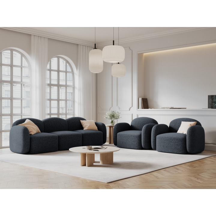 The Blair 3-seater sofa by Micadoni is a piece of furniture that stands out for its original and thoughtful form, offering comfort at the highest level. In its design, attention is drawn to rounded shapes - both the seat and armrests, devoid of angular lines, form a coherent, interesting whole. The charmingly low backrest encourages you to spend time in a comfortable position, while the deep seat provides spaciousness and comfort.