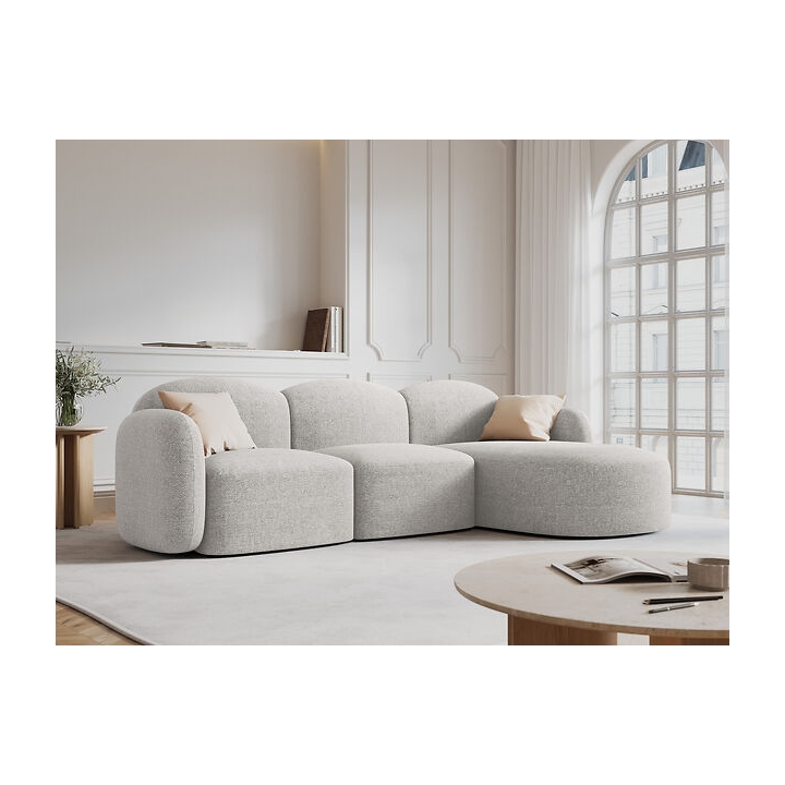The Blair 4-seater corner sofa by Micadoni is a modern piece of furniture that impresses with its original design and exceptional comfort. Its form is characterised by rounded edges, which gives it a cosy character. Made of chenille fabric , it is available in various colour versions, making it easy to match individual needs and interior style.