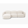 The 4-seater Blair corner sofa by Micadoni is a modern piece of furniture that impresses with its original design and exceptional seating comfort. Its shape is defined by rounded edges, giving it a cozy and inviting character. It can be upholstered in various fabrics available according to the configurator, allowing for perfect customization to individual needs and interior style.
