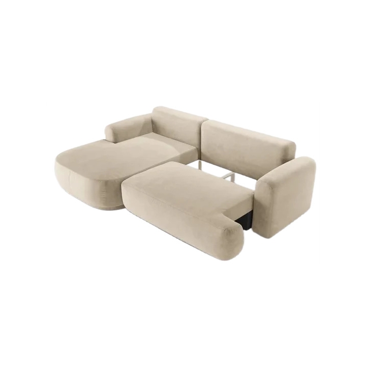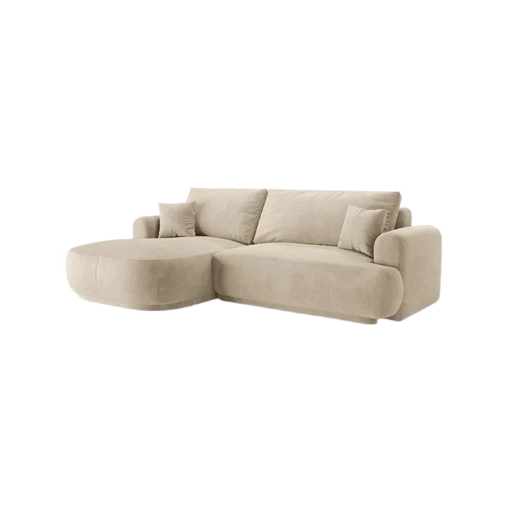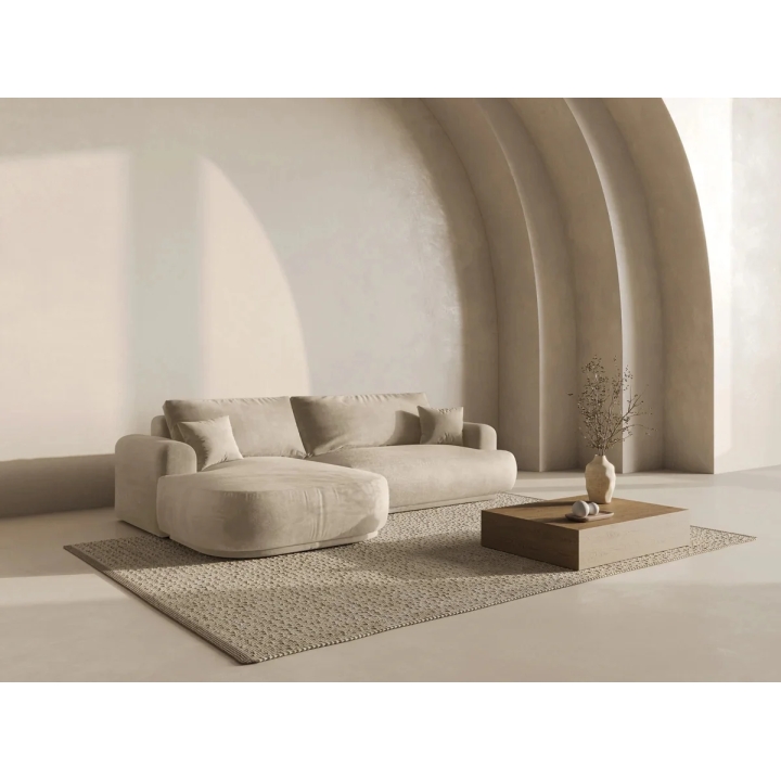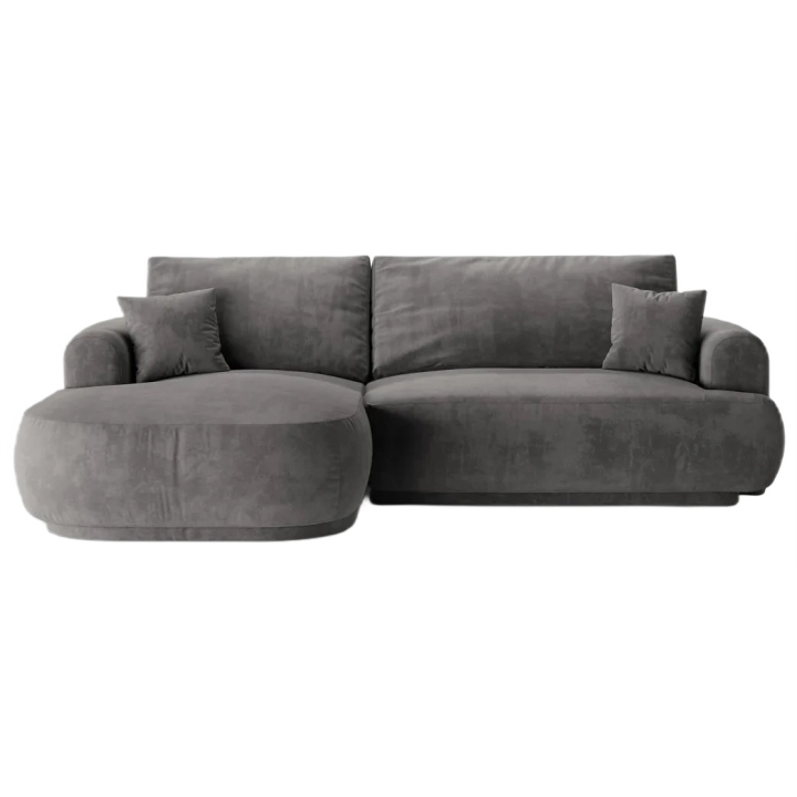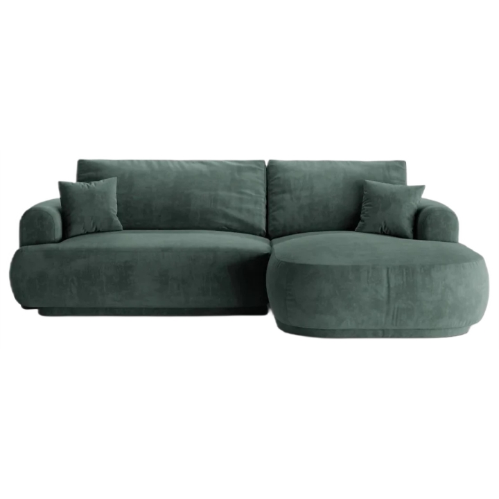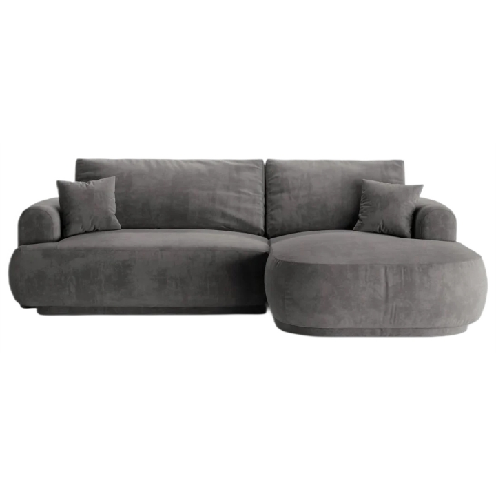 The seat is filled with polyurethane foam with a density of 30 kg/m³, enriched with an additional layer of non-woven fabric with a weight of 150 g/m³ and a spring to ensure durability and comfort. The backrest, on the other hand, is filled with silicone, which makes it soft and springy. The solid construction of the corner sofa can withstand a load of up to 550 kg, guaranteeing stability and long-lasting use. The model is available in both right and left-hand versions, allowing you to match it to the layout of your interior.