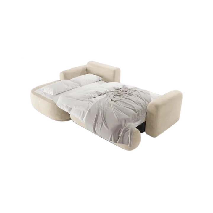 The Ella sofa bed from Micadoni is a combination of classic and contemporary solutions, inspired by retro aesthetics. Its spacious seating can accommodate five people, while the fold-out function will provide a comfortable sleeping space of 131 × 213 cm. The integrated storage box allows you to store bedding and other accessories, taking care of the practical organisation of the space.